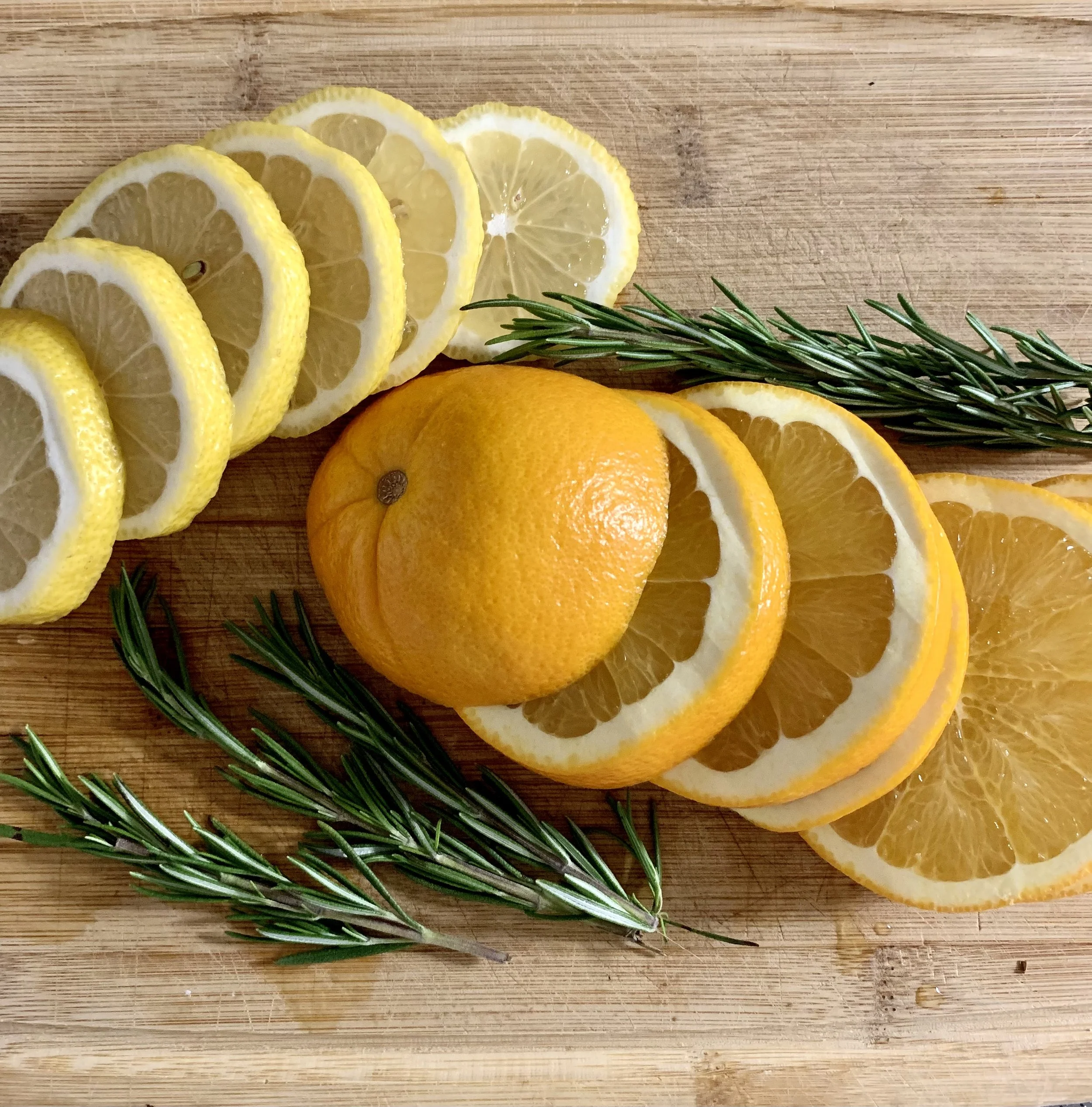 Add 4 sprigs of rosemary, 1 sliced lemon, 1 sliced naval orange, 1 teaspoon of vanilla & 2 cinnamon sticks